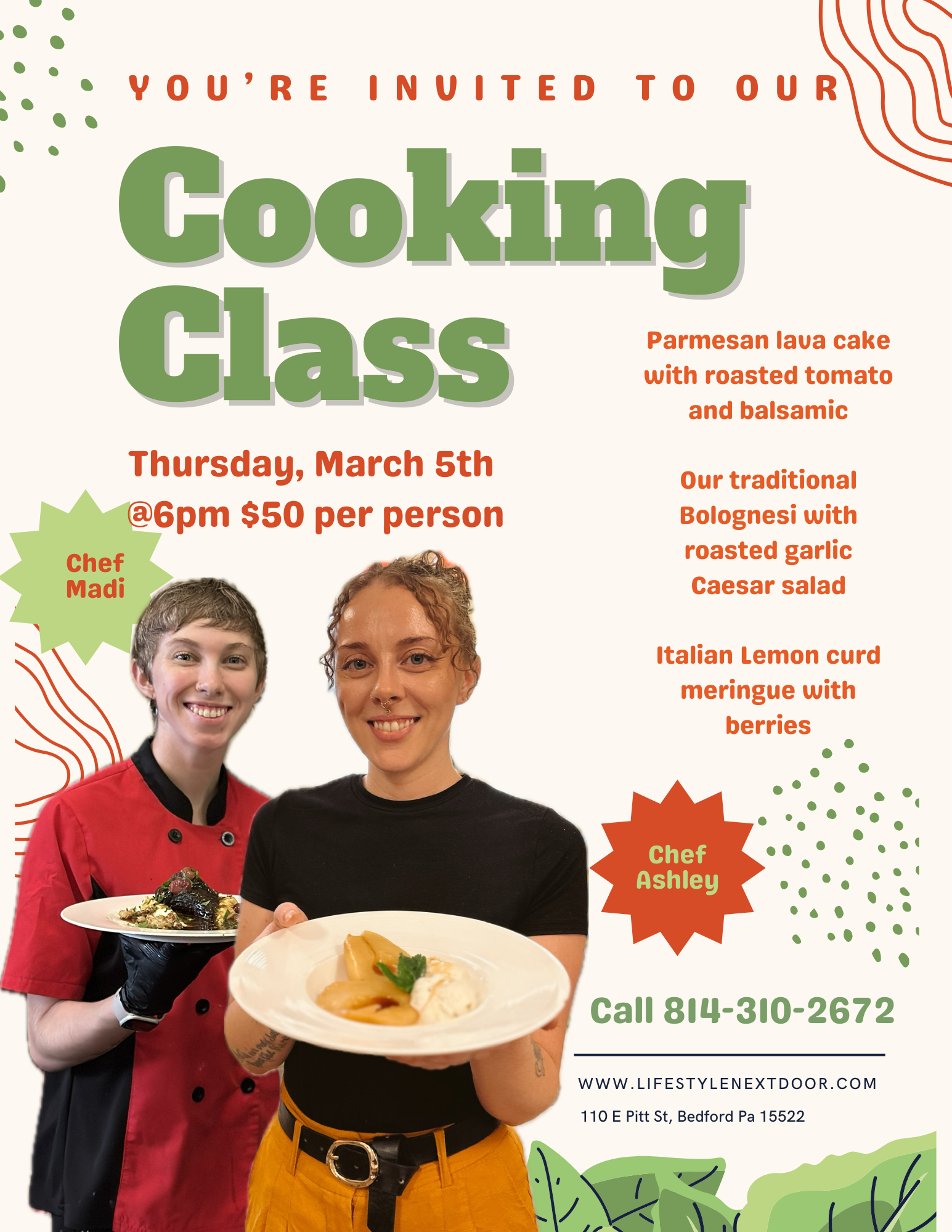 COOKING CLASS MARCH 5TH